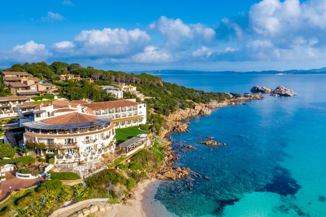 Accès direct à la plage de sable en pente douce, à quelques pas de la belle Piazzetta de Baja Sardinia. À 300 m de la plage privée de l'hôtel. À 35 km de l'aéroport d'Olbia.
