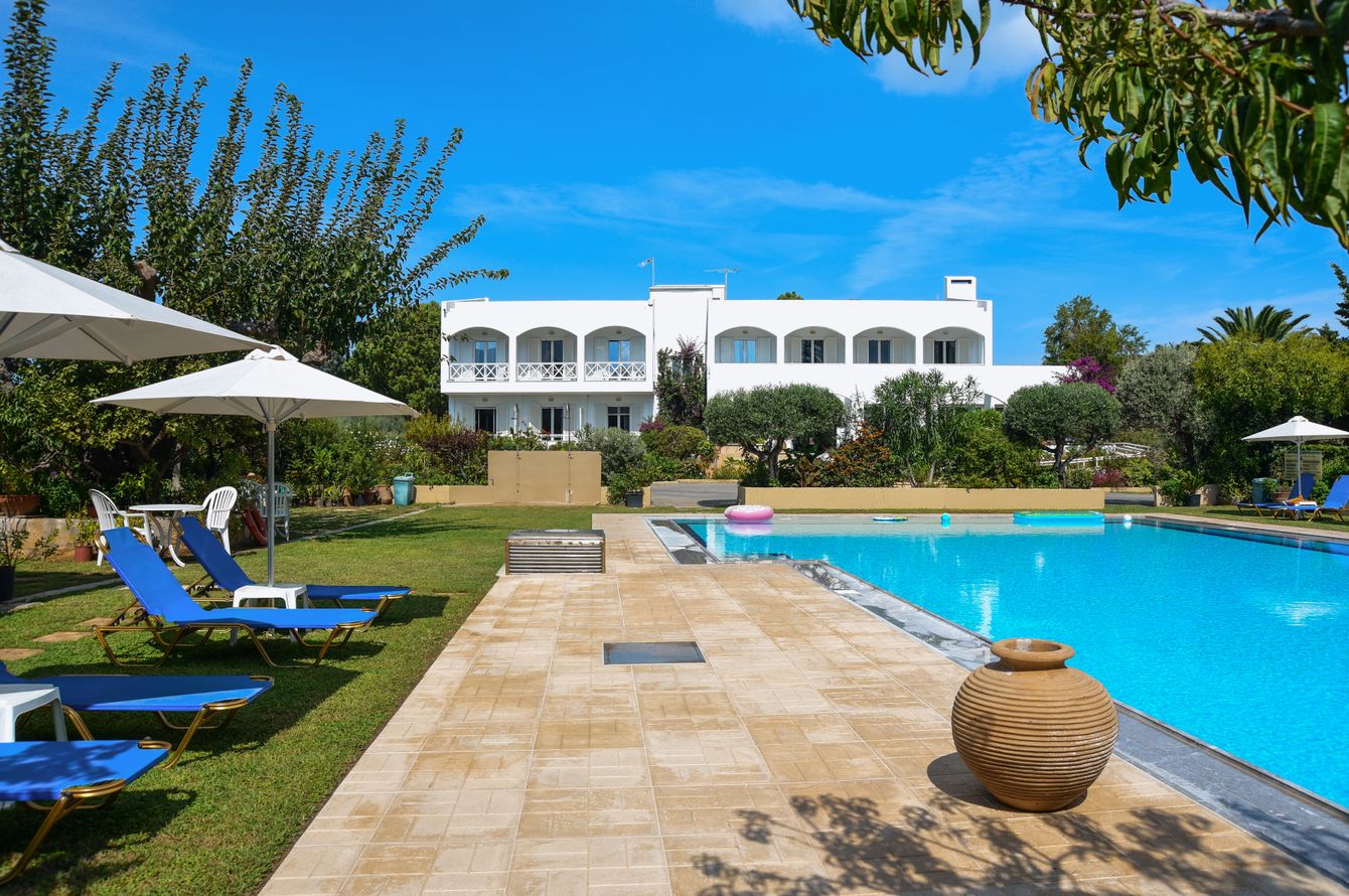 L'établissement de deux étages se trouve au cœur d'un parc luxuriant de 6500 m2. Hall de réception avec bar, coin Internet et Internet sans fil gratuits ainsi que salon TV. Salle de petit déjeuner. Menu grec fait maison sur demande. Parc avec piscine (ouverte en saison) avec pelouse. Chaises longues et parasols gratuits à la piscine, payants à la plage.