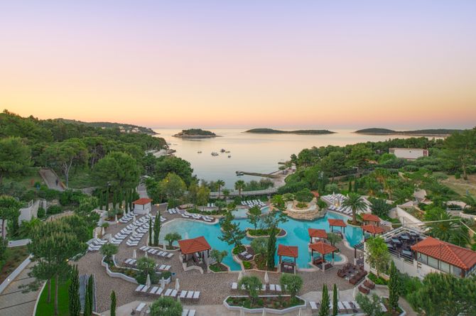 Ce complexe, entouré d’une pinède, se trouve dans une baie isolée au bord de la plage de Hvar. À 50 m d’une ravissante plage de gravier avec plateau de baignade et club de plage. À 600 m des nombreux restaurants, bars, commerces et divertissements de la vieille ville de Hvar. À 85 km de l’aéroport de Split (liaison en ferry Split–Stari Grad).