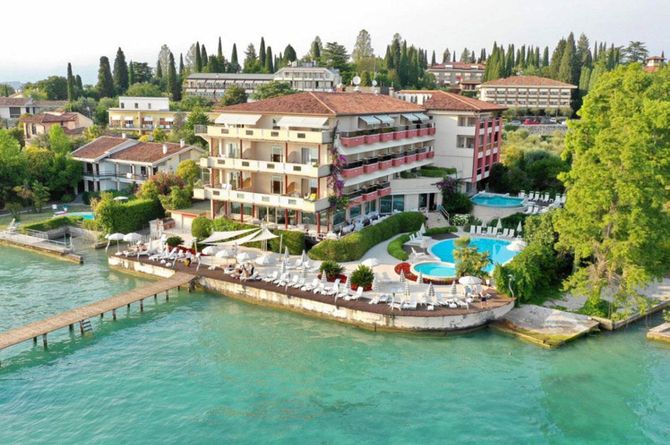 Établissement aux abords du lac de Garde, idéal pour des vacances au calme, axées sur le bien-être. Offre spa variée.
