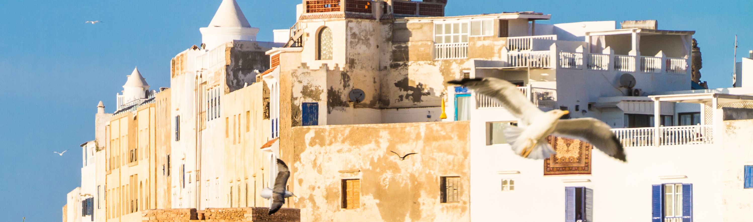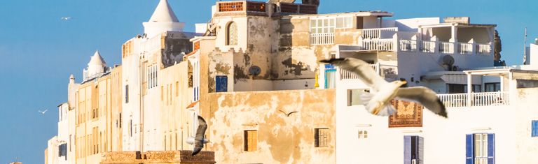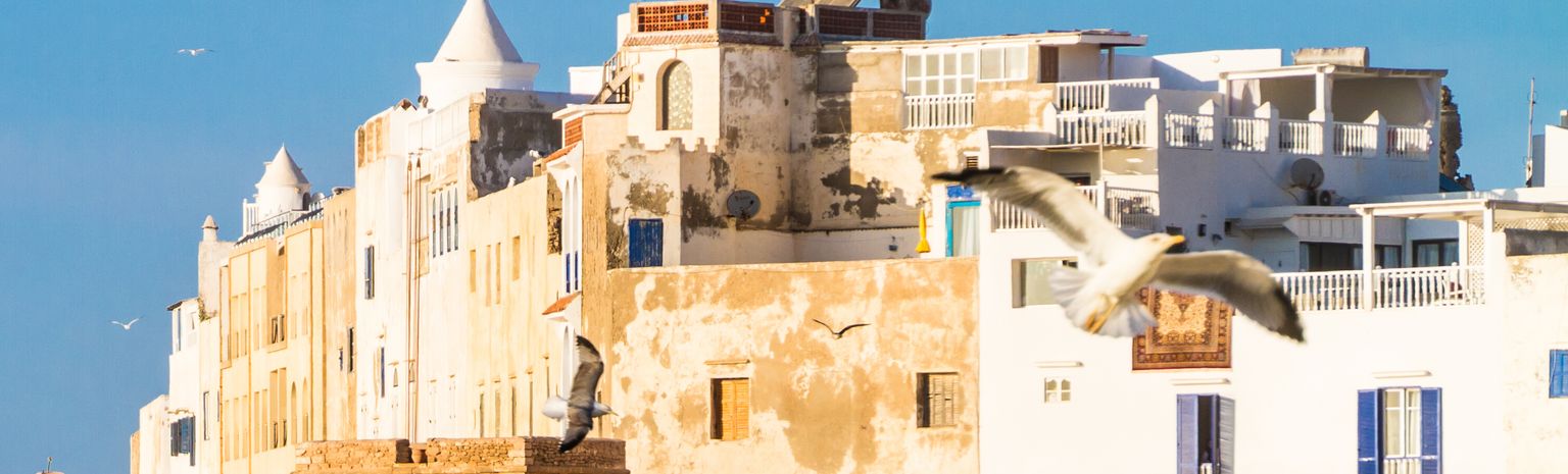 L'ancienne colonie portugaise du nom de Mogador a été bâtie en 1760 sur une presqu'île rocheuse puis entourée d'une puissante enceinte. Entre 1950 et 1975, de nombreux artistes et musiciens s'y installèrent. Les habitants vivent surtout de la pêche, de l'agriculture, du commerce et de l'artisanat; Essaouira est toujours appelée ville des artistes. La longue plage de sable est surtout appréciée des surfeurs.