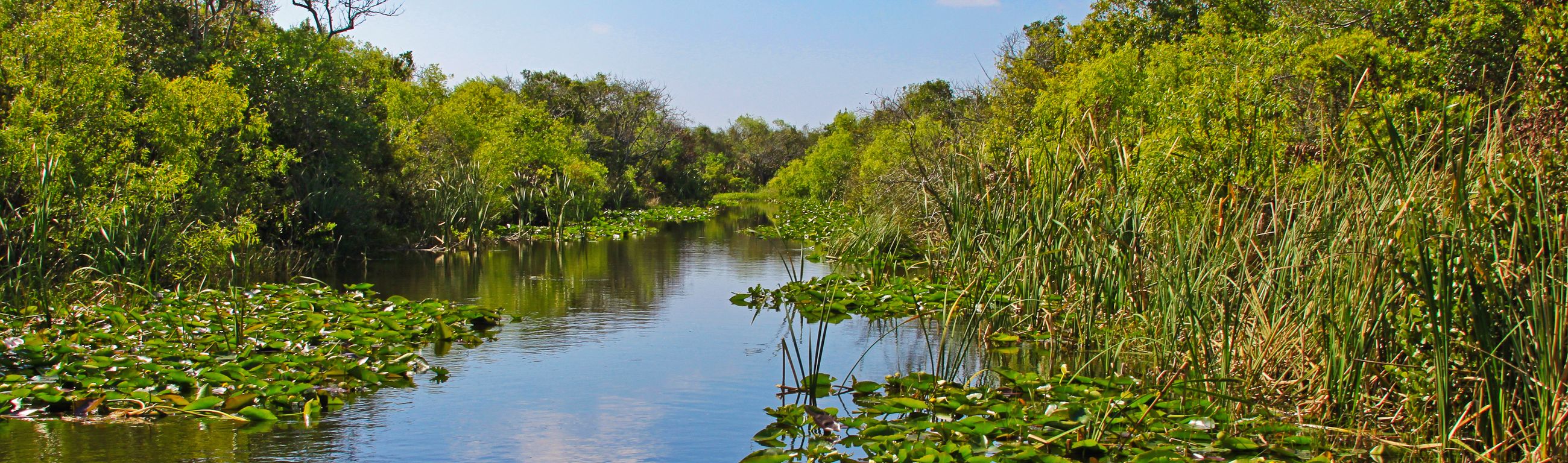 Ce qui ressemble à une steppe herbue est en fait un fleuve indolent, qui constitue un écosystème fragile abritant une faune et une flore variées. L'idéal pour partir à la découverte de ce parc national unique en son genre est d'y pénétrer par l'entrée principale d'Homestead ou par Everglades City.