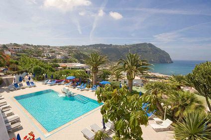Ce charmant hôtel trois étoiles qui surplombe la baie de Citara séduit par sa vue à couper le souffle. Profitez de la tranquillité du parc agrémenté d’une belle piscine thermale.