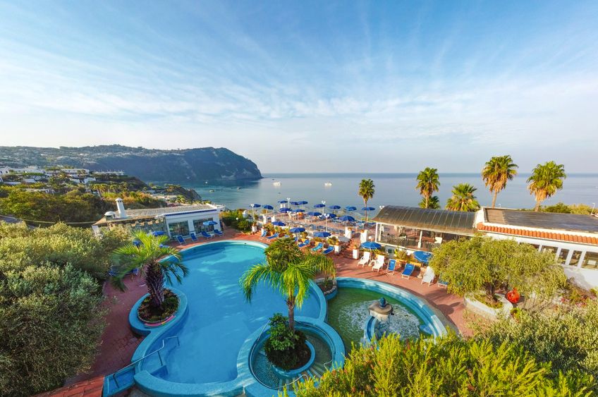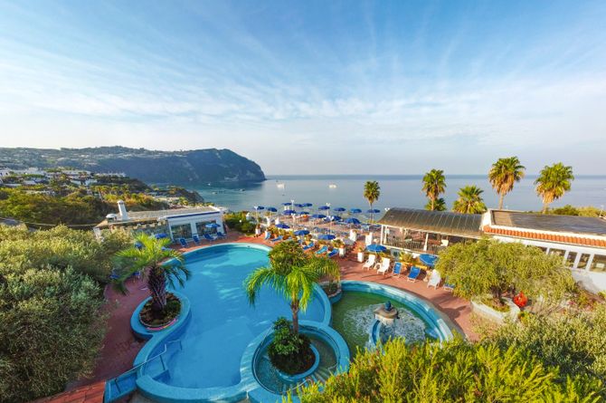 Surplombant légèrement la plage di Cava dell’Isola, située à 300 m, l’hôtel déploie une vue fantastique sur la mer et les environs idylliques. À 700 m de la plage di Citara, très appréciée et facilement accessible grâce à un bus-navette gratuit. À 2 km du centre pittoresque de Forio, situé sur les contreforts du mont Epomeo, et de son charmant petit port abritant quelques restaurants, bars et commerces. À 4 km de Santa Maria al Monte, culminant à 400 m, où se trouve la ferme et le vignoble de l'hôtel, dont les produits sont utilisés, entre autres, pour l’élaboration des repas au restaurant. À 11 km du port d’Ischia reliant Naples en ferry.