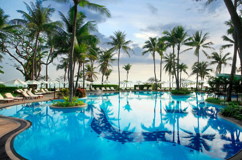 Juste au bord de la longue plage en pente douce de Hua Hin, dans la station balnéeaire de Hua Hin, à 900 m de la gare historique car elle est l’une des plus anciennes et des plus belles gares de Thaïlande. À 5 km de deux marchés nocturnes: Tamarind Market et Cicada Market. À 230 km de l’aéroport de Bangkok.