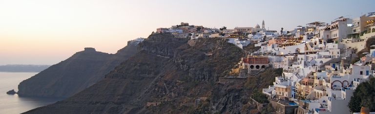 Imerovigli et Firostefani sont situées à 330 m d’altitude, sur le cratère, directement sur les falaises abruptes avec un panorama grandiose. L’agitation de la capitale Fira y est absente tout en étant à proximité.