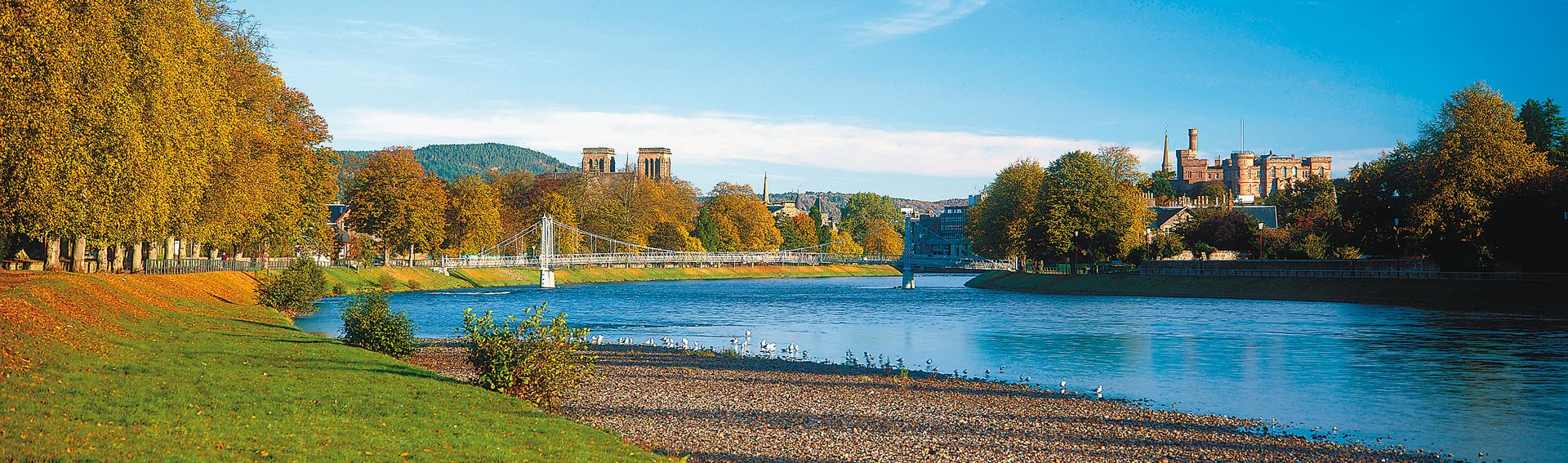 Inverness, centre administratif de la région, est considérée comme la «porte d'entrée des Highlands». Reliée par un pont suspendu, cette ville empreinte d'histoire abrite une promenade maritime et des édifices en pierres rehaussés de décorations florales qui font sa renommée.