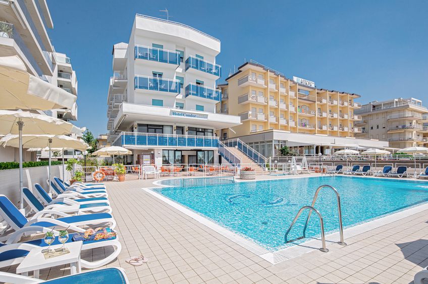 Hall de réception accueillant, wifi gratuit. Bar. Parking gratuit selon disponibilité. Espace extérieur avec piscine, bain à remous et terrasse. Chaises longues et parasols gratuits à la piscine et payants à la plage.