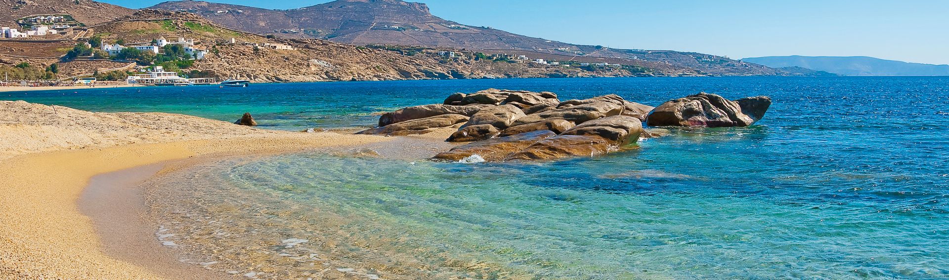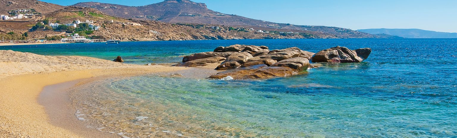 La plage de Kalafati est l'une des plus courues de Mykonos non seulement en raison de son sable doré et de ses eaux cristallines, mais aussi à cause de ses excellentes conditions pour la pratique des sports nautiques, notamment la plongée et la planche à voile.