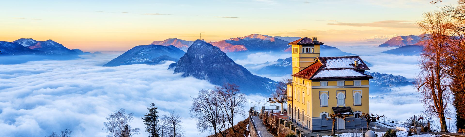 Lago di Lugano en hiver: le climat doux permet toute l'année promenade, randonnée ou tour à vélo. De même les 3 clubs de golf tessinois sont ouverts l'année durant. Nombreux spas, centres de bien-être, bains thermaux à disposition.