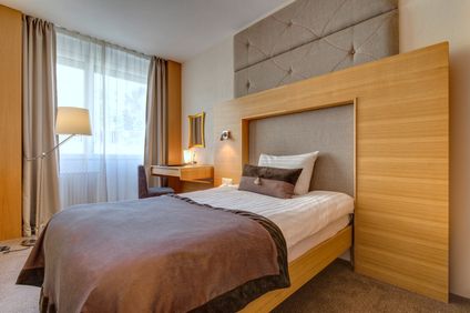 Lumineuses et fonctionnelles, les chambres (15–28 m2) ont bain ou douche, WC, sèche-cheveux, TV, wifi gratuit, coffre-fort, bouilloire et climatisation. Balcon et vue lac sur demande.