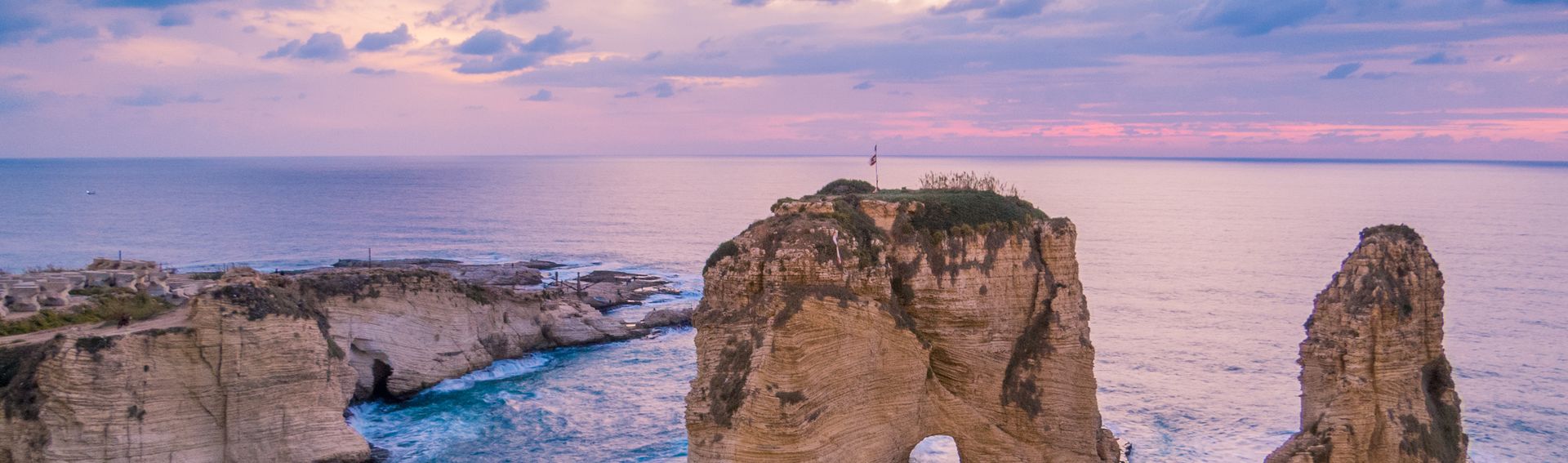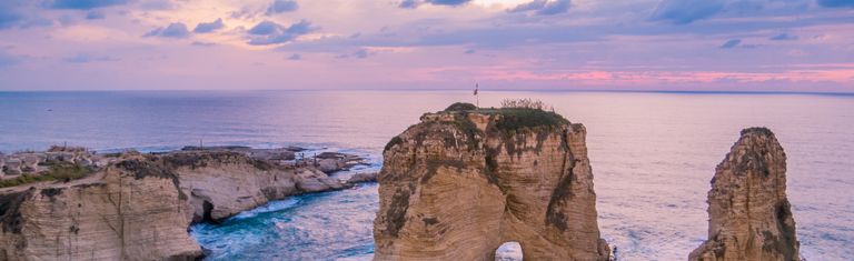 Les rochers aux Pigeons à l'ouest de Beyrouth, également surnommés les «Rochers de Raouché», sont d’impressionnantes formations rocheuses en Méditerranée.