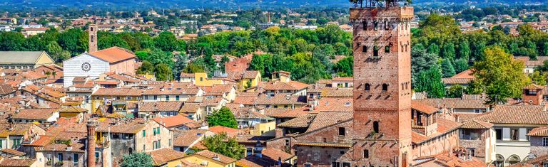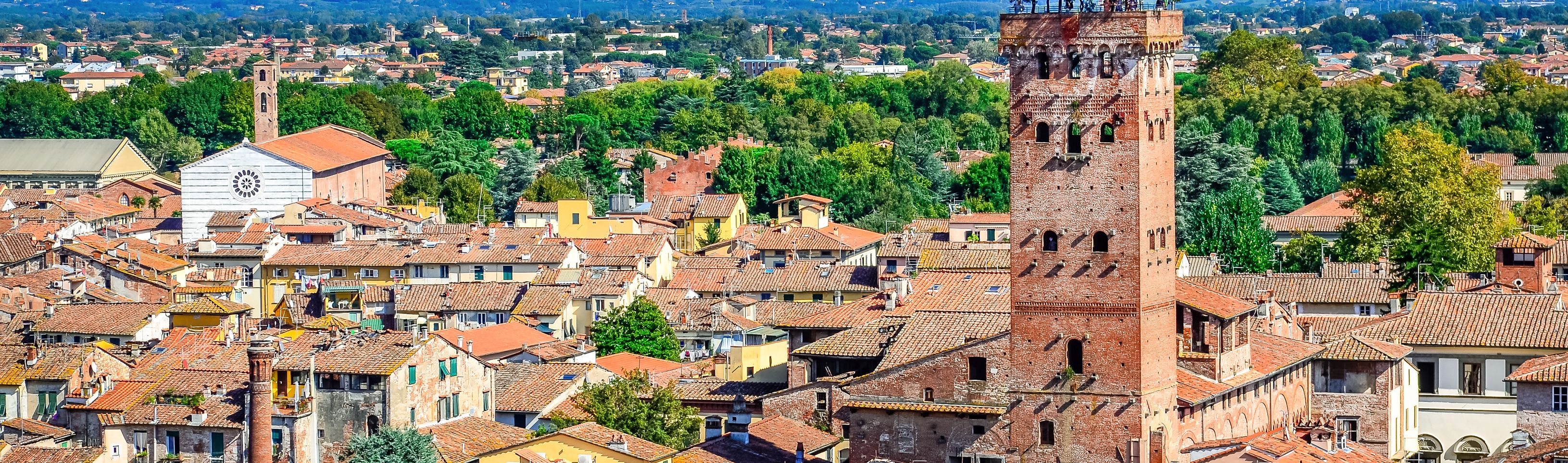 Lucques, chef-lieu de la province éponyme, se trouve en Toscane, à 18 km au nord-est de Pise et à 30 km à l’est de la côte de la mer de Ligurie. Le centre-ville abrite des fortifications historiques encore bien conservées dotées de portes: Porta Santa Maria, Porta San Jacopo, Porta Elisa, Porta San Pietro, Porta Vittorio Emanuele II (connue sous le nom de Porta Sant’Anna), Porta San Donato nuova, Porta San Donato viecchia, Porta San Gervasio et Porta die Borghi. Si certaines portes de la ville sont parfaitement intactes, d’autres ne le sont que partiellement. Pour pénétrer au centre-ville, il faut encore franchir ces portes. Lucques possède une promenade piétonnière bordée d’arbres de 4 km de long et qui permet d’en faire le tour à pied ou à vélo. De nombreuses églises romanes, des tours moyenâgeuses, des palais et les places proéminentes comme les Piazza Sans Michele et Piazza dell’anfiteatro caractérisent la ville. La Piazza San Michele marque le cœur historique de Lucques. On y trouve l’église de San Michele in Foro. La Piazza dell’anfiteatro est de forme ovale et ses maisons occupent une partie de l’ancien amphithéâtre romain. De petits commerces, restaurants et cafés invitent à la flânerie. Outre les murailles et autres curiosités, Lucques abrite la maison natale du célèbre compositeur Giacomo Puccini, laquelle est devenue un musée ainsi que la Piazza del Giglio et son théâtre, le teatro del Giglio où Puccini jouait du piano durant ses études puis connut par la suite un immense succès avec ses œuvres. La tour Guinigi qui appartenait à la riche famille des Guinigi est une autre pièce d’art de Lucques. Après en avoir gravi les 230 marches, elle s’ouvre sur un jardin suspendu planté de chênes et offre du haut de ses 44 m une vue grandiose sur les toits rouges de la ville avec en toile de fond le paysage vallonné toscan. La vue s’étend jusqu’à la Torre dell’Orologio, un clocher doté d’un escalier en bois comptant 207 marches. Le mécanisme de son horloge est aujourd’hui encore absolument remarquable. La gare de Lucques, située extra-muros, offre en autres des trains pour Florence (90 km).