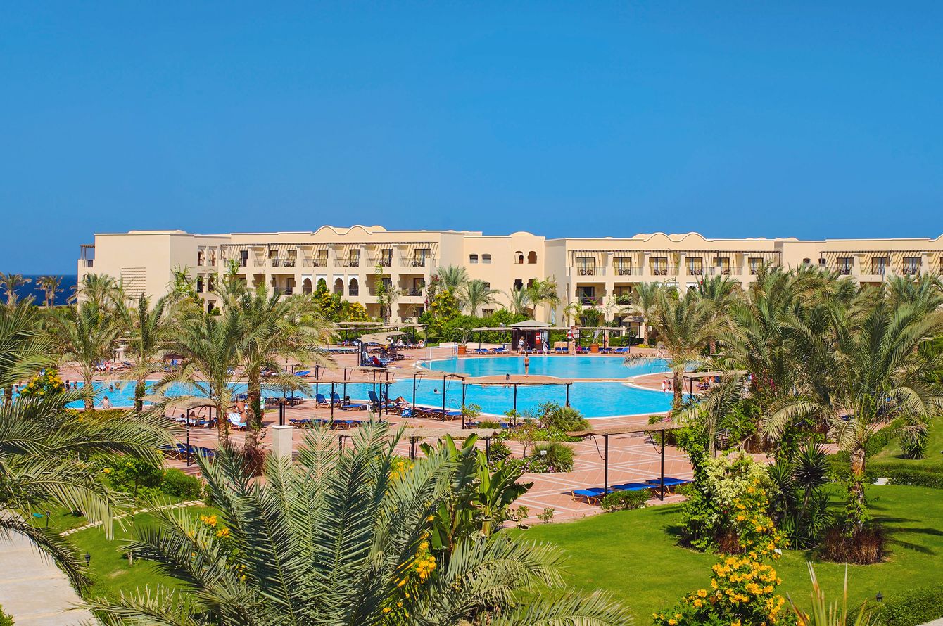 Un peu en surplomb de la baie de Coraya, au bord de la plage avec récif corallien fascinant. À 200 m de la mer avec accès direct (zone limitée) ou par un ponton devant l’hôtel. Commerces, divertissements et parc aquatique Aqua Coraya à Madinat Coraya (payant). À 5 km de l’aéroport de Marsa Alam.