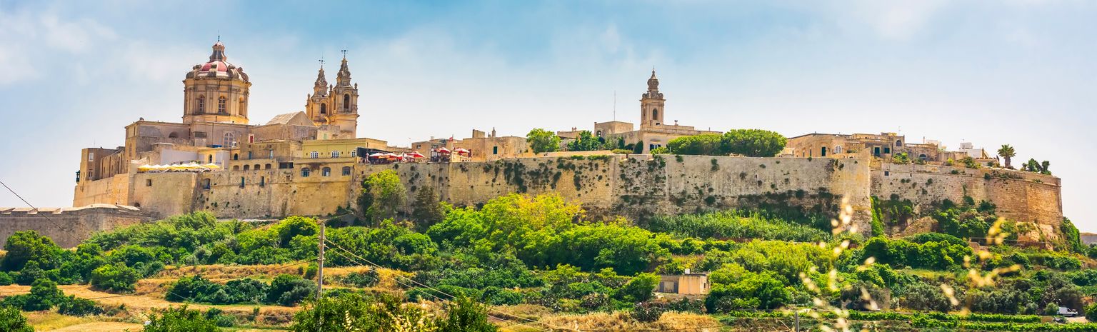 Située dans le centre occidental de Malte, Mdina trône sur une colline haute de 185 m, un emplacement idéal que les Phéniciens avaient déjà découvert et qu’ils avaient nommé Malet en y érigeant une forteresse. Lors de la domination romaine, Malet devint Melita et un mur d’enceinte fut construit, incluant la localité de Rabat au sud. Lorsque les Arabes arrivèrent à Malte, le nom changea encore une fois pour devenir Mdina et la zone de défense se vit alors limitée à la partie de la ville de Mdina. Les remparts et la porte de la ville forment actuellement les symboles de la cité. En raison de l’interdiction aux automobiles de circuler à l’intérieur des remparts, celle-ci est particulièrement calme et agréable, ce qui lui vaut le surnom de «ville silencieuse». La cathédrale Saint-Paul est également d’une importance majeure. Elle est considérée comme le chef-d'œuvre de son constructeur, Lorenzo Gafà, et sa décoration intérieure somptueuse forme un contraste évident par rapport à la sobriété de sa façade. On peut ainsi y admirer des monuments funéraires aux marbres colorés et des voûtes couvertes de fresques siciliennes. Le musée de la cathédrale voisin abrite une collection de gravures sur cuivre et sur bois d’Albrecht Dürer. Mdina n’a que quelques restaurants, cafés et stands où l’on trouve des produits locaux, mais aucune offre de loisirs, contrairement à Rabat qui concentre les infrastructures touristiques et culturelles. Les localités de Mdina et Rabat forment une destination de vacances très attrayante et prisée tout au long de l’année. Il ne faut que 13 km pour se rendre à La Valette, la capitale.