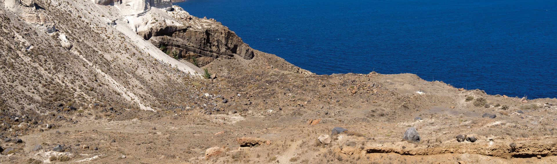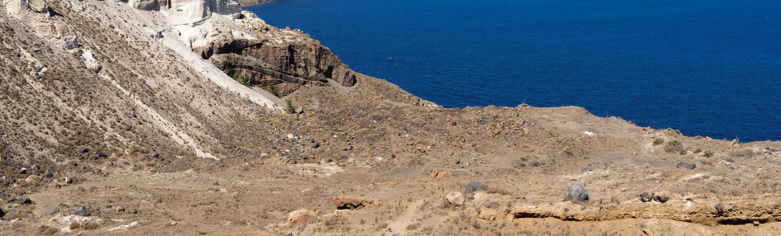 Plages noires au bord du cratère, vignes fertiles et magnifiques panoramas, Megalochori / Pyrgos montre toute la beauté de l'île volcanique de Santorin.