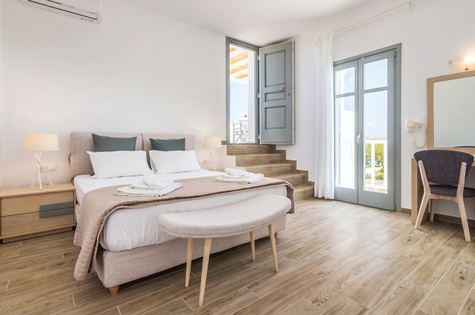 Les studios et suites ont douche à effet pluie, WC, sèche-cheveux, téléphone, TV, Internet sans fil gratuit, cuisinette avec micro-ondes, réfrigérateur, bouilloire, climatisation, balcon ou terrasse.