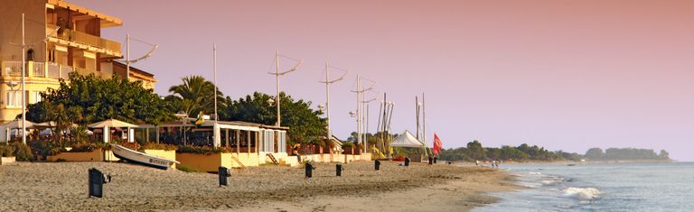 Située à 40 kilomètres au sud de Bastia sur la Costa Verde, Moriani Plage est une destination balnéaire appréciée par les touristes actifs. C'est en outre l'une des rares villes de la côte Est située en bord de mer. Cette ancienne station balnéaire ayant appartenu à San Nicolao est surtout prisée par les familles avec enfants et les non-nageurs car sa plage de sable fin est en pente douce. Entourée de prés verts, de grandes forêts et de villages pittoresques avec une vue incroyable sur la mer, Moriani Plage a encore davantage à offrir. Ici, tout est possible: escalade en falaise, randonnée dans la rivière asséchée, planche à voile, plongée, plongée tuba ou tout simplement far niente sur la plage. La ville est aussi un excellent point de départ pour les excursions et randonnées dans les luxuriantes forêts de châtaigniers de la Castagniccia, les boutiques et la visite de Bastia ou du Cap Corse. Il vaut aussi la peine de visiter la ferme Bordéo, une petite distillerie biologique qui produit des essences et arômes utilisés pour les huiles essentielles et la parfumerie. Vous pourrez y visiter le jardin des herbes aromatiques et acheter les parfums de la Corse à la boutique. Pour changer avec la plage, entreprenez un voyage dans l'arrière-pays de San Nicolao à Cervione par la route panoramique. On cultive dans cette région des vergers, des légumes et des vignes. A voir aussi: la petite église de San Nicolao perdue au milieu des grands châtaigniers et son imposant clocher baroque. A Corniche, la rivière Bucatoggio se jettent dans le vide entre deux tunnels creusés dans la falaise et dans le bassin d'eau claire au pied de cette cascade de 30 m, vous prendrez un bain divinement rafraîchissant.