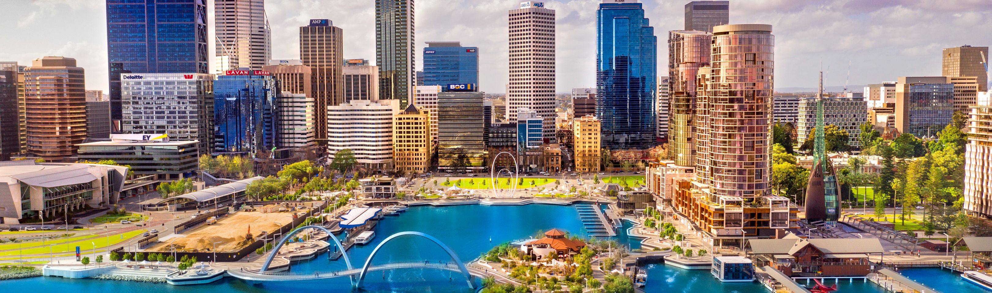 Le centre se caractérisant par ses gratte-ciel modernes aux façades de verre et d'acier est aisément accessible. Les zones piétonnes des rues Hay et Murray se prêtent bien au lèche-vitrines. Les boutiques dernier cri des stylistes ont pignon sur rue à West Perth ou à Subiaco. Le quartier des divertissements de Northbridge attire par ses nombreux bars, boîtes de nuits et commerces branchés. Le poumon vert de la ville est Kings Park; on y découvre une brousse encore authentique et une flore et faune diversifiées, ceci avec vue sur la silhouette de la ville se profilant à l'horizon. Grâce aux transports publics, les mordus de plaisirs balnéaires atteindront les plages de Floreat, Cottesloe et Scarborough. De petits restaurants à la mode et des boutiques insolites attendent le visiteur à Beaufort Street dans le quartier de Mount Lawley. La petite cité portuaire de Fremantle, comprenant le long de Cappuccino Strip des bâtiments datant de l'ère coloniale, de nombreux commerces, le sensationnel musée maritime, de jolis restaurants, bars et cafés, n'est pas uniquement appréciée des touristes. Les marchés de Fremantle et d'E-Shed avec aire de restauration sont des lieux de rencontre appréciés des habitants de la ville.Quiconque aime la plongée libre ou le vélo ne devrait pas manquer Rottnest Island connu pour ses plages blanches et ses baies turquoise. Cette île est facilement accessible par bateau ou ferry au départ de Perth ou de Fremantle.