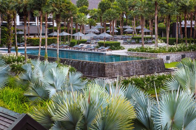 Hall de réception et wifi gratuit. Salle de petit déjeuner, restaurant principal international et thaïlandais dans un pavillon avec terrasse, restaurant gastronomique thaïlandais (sur réservation), grill (dès 8 ans, sur réservation), grill sur la plage avec fruit de mer, café en plein air avec en-cas, bars, bar sportif, bar immergé dès 14 ans, cave à vin (sur réservation). Boutiques, galerie d’art. Parc arboré de palmiers avec piscine lagunaire avec cascade pour les familles et deux piscines pour les plus de 14 ans, dont une à débordement. Chaises longues et parasols gratuits aux piscines.