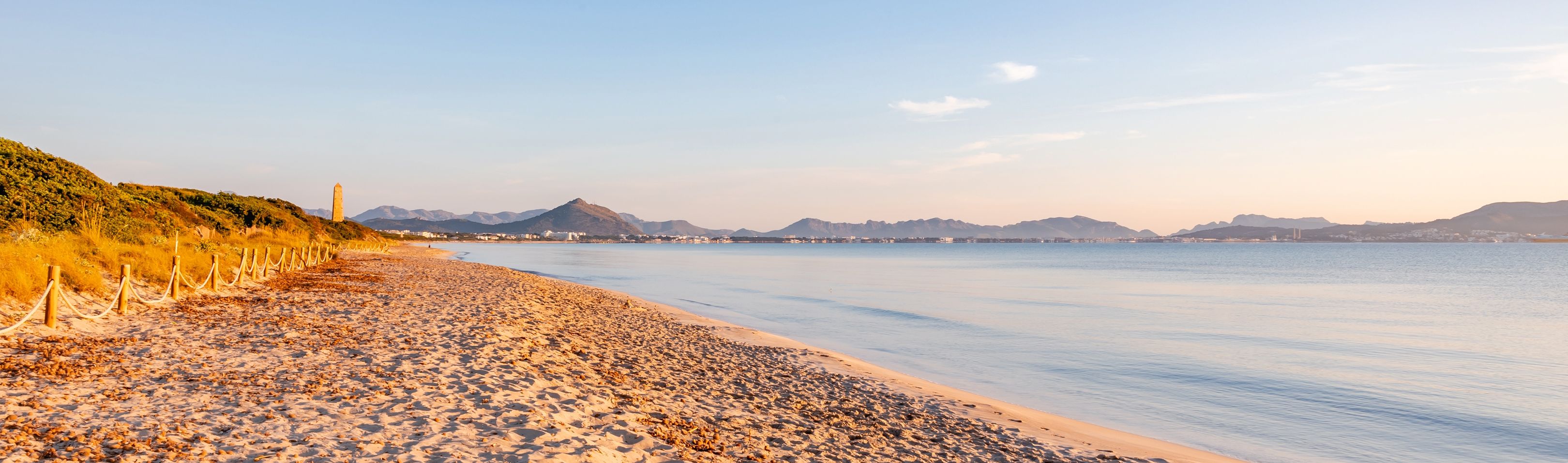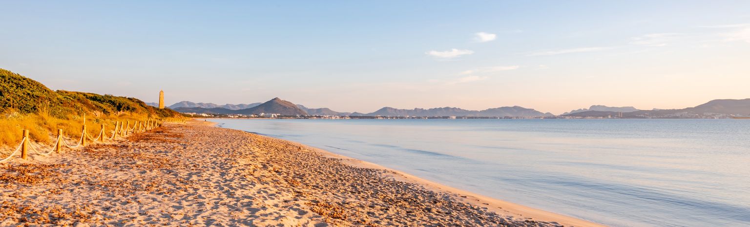 Playa de Muro est le tronçon de plage le plus austral d’Alcúdia et se trouve ainsi au bord de la baie éponyme située au nord-est de Majorque. Large et d’une longueur de six kilomètres, la plage de sable en pente douce entre dans la mer turquoise et convient particulièrement bien aux familles avec des petits enfants désireuses de passer d’agréables moments sur un sable fin et dans une eau claire. Les couples, les groupes et personnes seules s’y sentent également très à l’aise. Tandis que de douces vagues agitent la surface de l’eau, on aperçoit un paysage de dunes herbeuses en arrière-plan. Et notre regard se porte jusqu’à l’île voisine de Minorque. Avec ses commerces, bars et restaurants, la promenade forme une réelle invitation à la flânerie. Et pour satisfaire les envies des sportifs et personnes aimant la diversité des activités, l’offre s’étant du volley de plage, en passant par la planche à voile, le jet-ski, le canoë, le Pédalo, le stand up paddle, le parachute ascensionnel, le bateau banane, le ringo, le sting ray, le crazy ufo, le flybus jusqu’aux excursions en bateau à fond transparent. Des aires de jeu sont également disponibles.