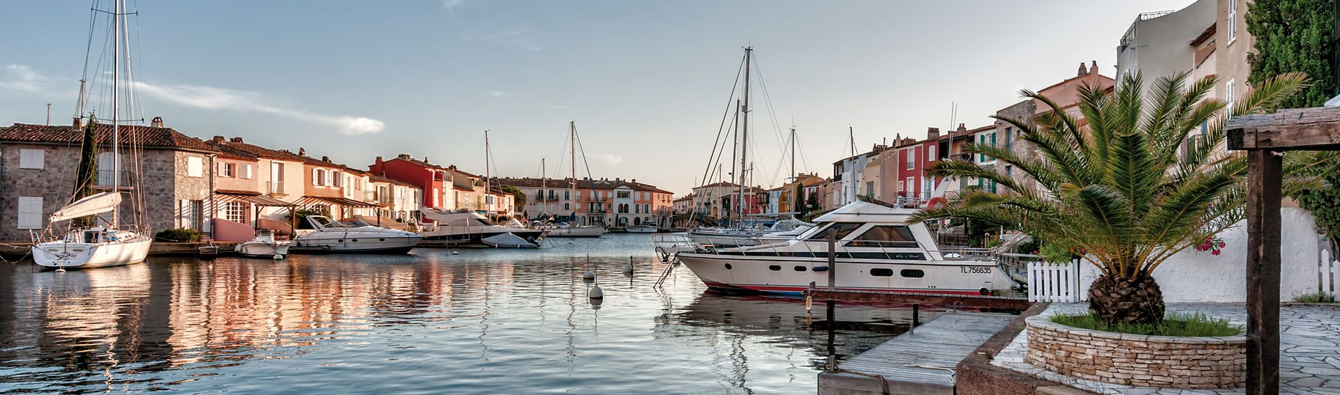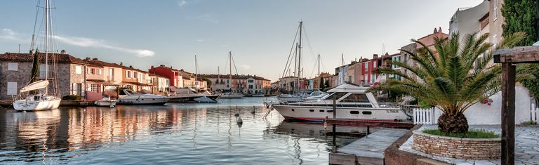 Port Grimaud, souvent aussi définit «Venise de la France», a été conçu en 1966 par l'architecte français Francois Spoerry. Le plaisancier passionné a réalisé soi-même son rêve du propre bateau directement devant la porte de sa maison.