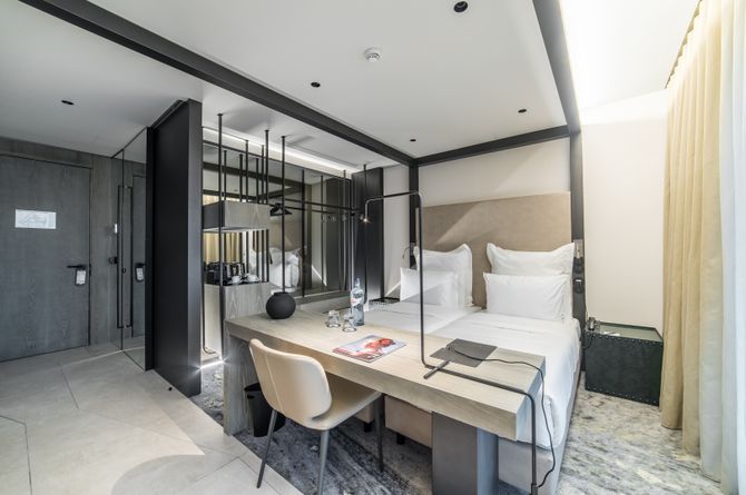 Les agréables chambres, décorées dans des tons chauds, ont douche, WC, sèche-cheveux, téléphone, TV, wifi gratuit, coffre-fort, minibar, bouilloire, climatisation. Vue ville sur demande. Plus spacieuses, les chambres Deluxe ont, en plus de l’aménagement de base, peignoirs et machine Nespresso.