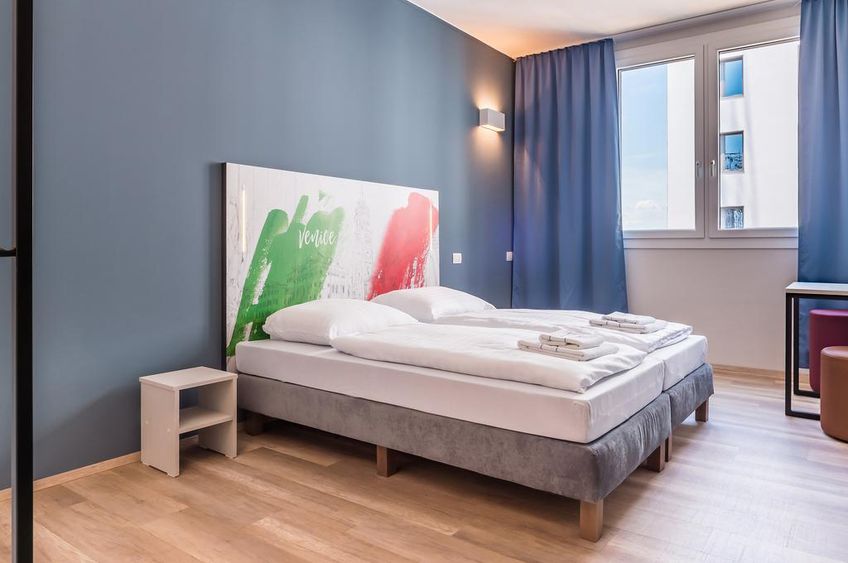 En face de Venise, sur le continent, dans le quartier moderne de Mestre, à 500 m de la gare «Venezia Mestre». Plusieurs restaurants, bars et commerces dans un rayon de 500 m. À 10 km du centre de Venise, soit 12 min en train depuis Mestre. Visitez les nombreux sites célèbres comme la place Saint-Marc avec la cathédrale du même nom, le pont des Soupirs ou le pont du Rialto, célèbre dans le monde entier. Voguez en gondole sur les canaux romantiques ou faites une excursion sur l'île traditionnelle des souffleurs de verre de Murano. À 6 h 15 de Zurich. À 30 minutes en transports publics de l’aéroport de Venise.