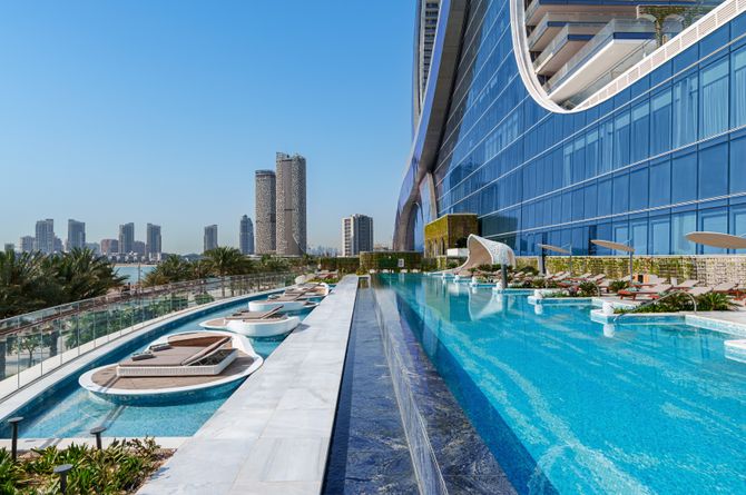 L’établissement impressionne par son architecture ovale marquante, qui s'intègre élégamment à la skyline et incarne une esthétique moderne exceptionnelle. Dans les célèbres Katara Towers, dont la forme incurvée du bâtiment crée un sentiment d'ouverture. Le design luxueux combine un décor opulent et un style contemporain pour créer une atmosphère de calme et de raffinement. Hall de réception et wifi gratuit. 3 restaurants à la carte (cuisine italienne, européenne et méditerranéenne), café, fumoir, bar. 2 piscines avec terrasses ensoleillées et un bar de piscine/snacks se trouvent à l'extérieur. Chaises longues et parasols gratuits aux piscines.
