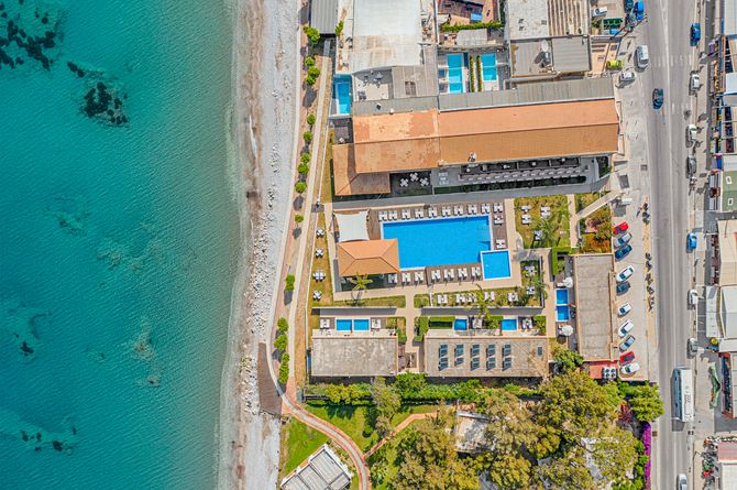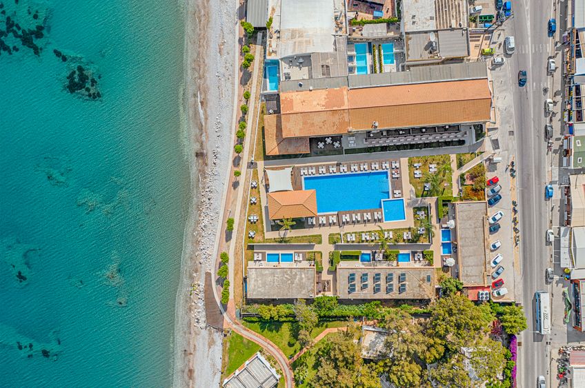 Hôtel de première classe au plus bel endroit de la côte nord-ouest de Rhodes. De quoi se laisser choyer tout en profitant de vos vacances.