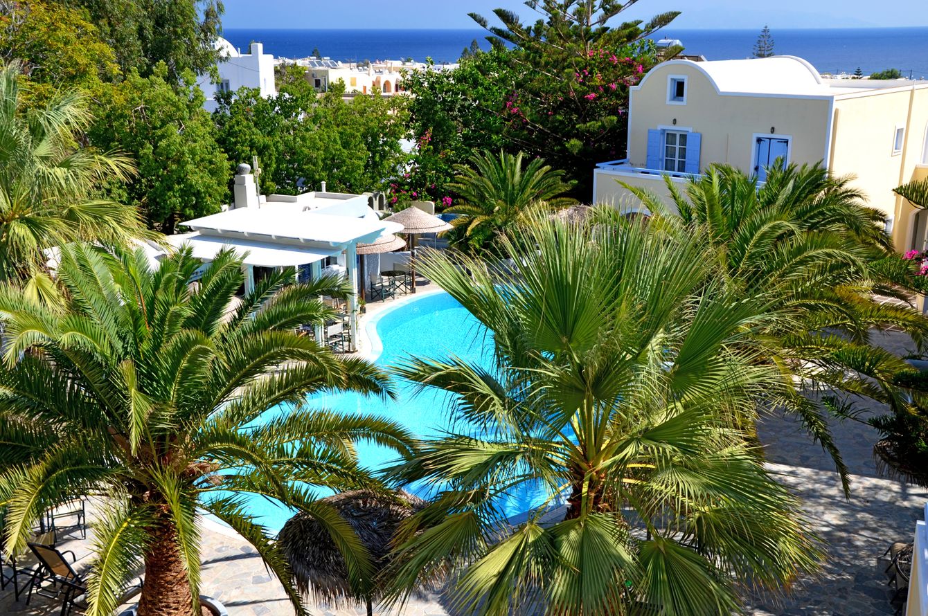 Tranquille, à 300 m de la célèbre et très longue plage de lave noire et des nombreux commerces, restaurants, petites tavernes et cafés du centre de Kamari. À 100 m de l'arrêt de bus et à 8 km de Fira, chef-lieu animé de l'île. À 5 km de l'aéroport de Santorin.
