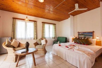 À 200 m de la plage de sable fin en pente douce de Grand Anse. À 1 km de l'aéroport de Praslin.