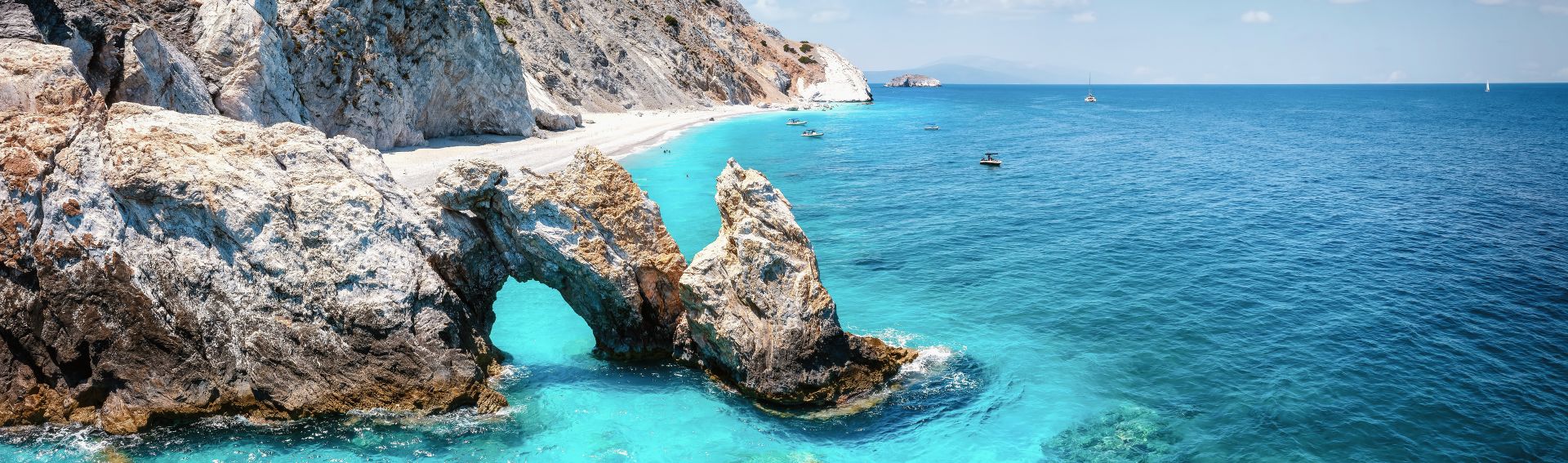 Skiathos, île principale des Sporades, est un véritable paradis balnéaire offrant de belles plages soignées et des baies romantiques à souhait: la plus belle est sans conteste la longue plage de Koukounaries, considérée par certains comme la plus belle de toute la Grèce. Malgré le grand nombre de visiteurs durant la haute saison, Skiathos a su garder son charme d'antan. La plaque tournante de l'île est illustrée par la ville éponyme, construite dans une anse formant un port naturel.
