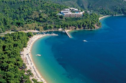 Surplombant la baie de Koukounaries, la vue sur la mer est fantastique. À 250 m de la plage de sable fin de Koukounaries, l'une des plus belles plages de l'île, et à 150 m de celle de Maratha. Le centre la ville de Skiathos est à 10 km. À 12 km de l’aéroport.
