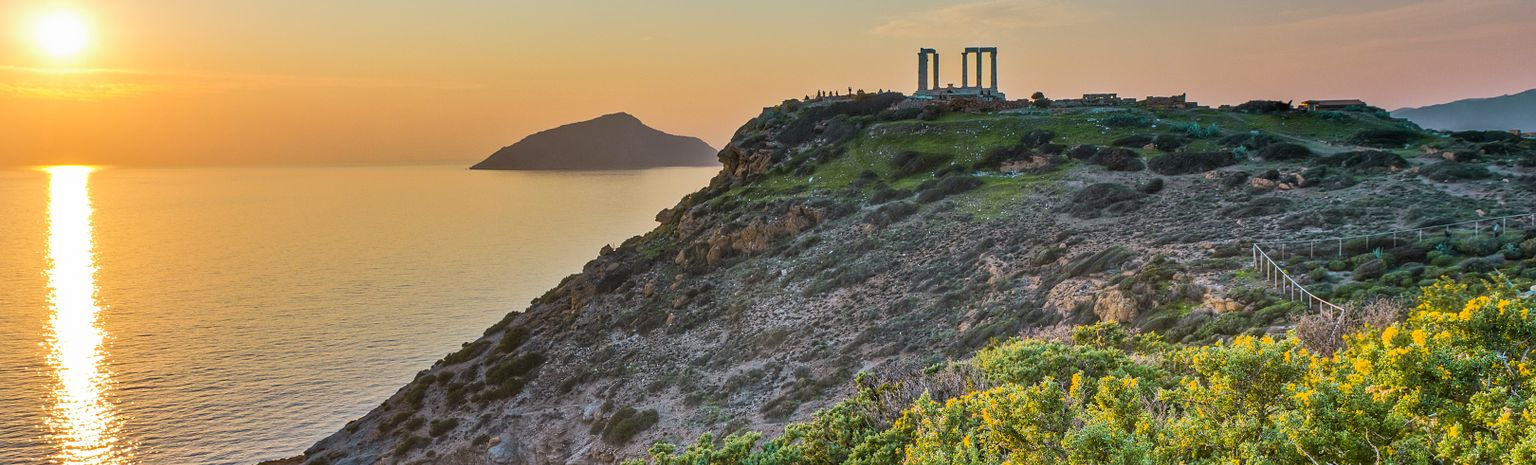 Le cap Sounion se situe dans la région Attique, à 70 km au sud de la capitale, Athènes. L’endroit est avant tout connu pour son temple, celui de Poséidon, et abrite également un parc national. Construit en l’honneur au dieu de la mer Poséidon – frère de Zeus –, le temple de Poséidon s’élève majestueusement sur un promontoire escarpé qui semble absorber les rayons du soleil. Il rappelle les exploits de ce dieu de la mythologie grecque, le dieu protecteur d’Athènes. Aujourd'hui, on peut visiter ces ruines de marbre et apprécier un panorama impressionnant sur les îles de la mer Égée au loin. Au coucher du soleil, l’expérience se fait marquante. Dans l’antiquité d’ailleurs, on adorait la lumière si particulière de cette région. Le long de la côte, les hôtels dotés de portions de plage privatives et de criques isolées ravissent les amateurs de calme et les romantiques dans l’âme.