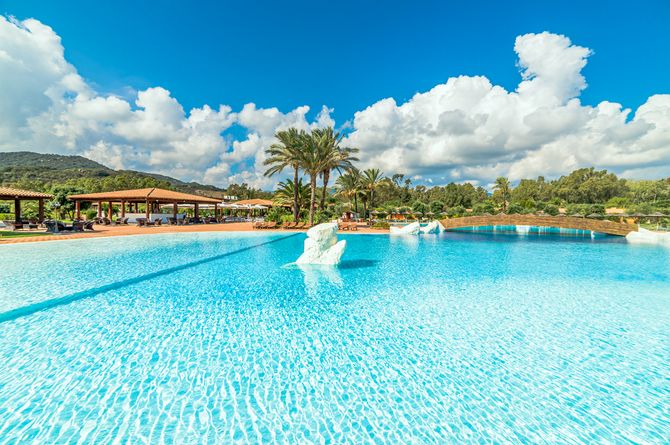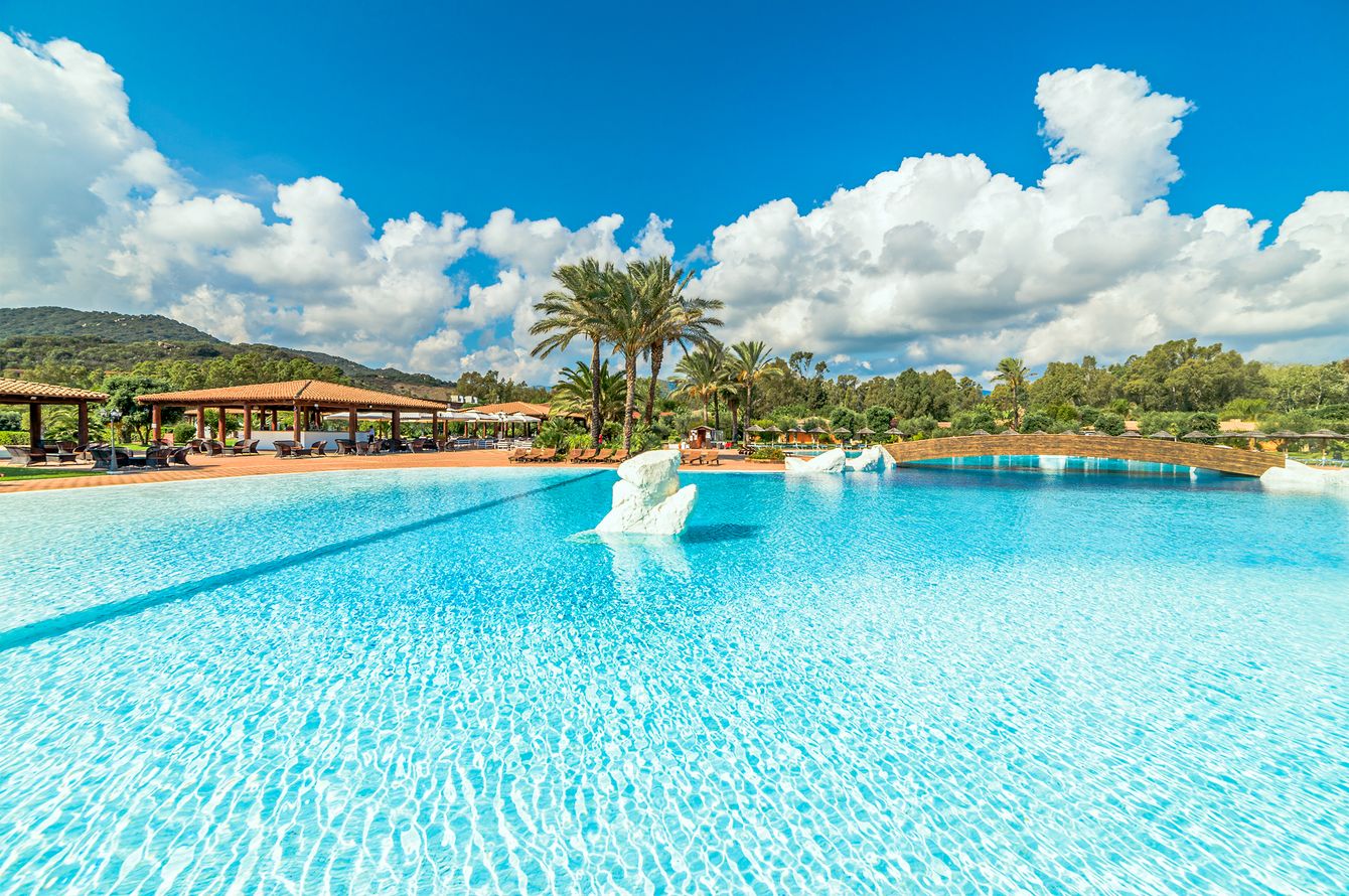 Niché dans un parc de 7 ha, au calme. Selon l’emplacement du logement, à 300 m de la plage de sable blanc «spiaggia di Cala Sinzias» avec un tronçon exclusivement réservé à l’hôtel. À 6 km des restaurants, bars et commerces du centre de Costa Rei. À 60 km de l'aéroport de Cagliari.