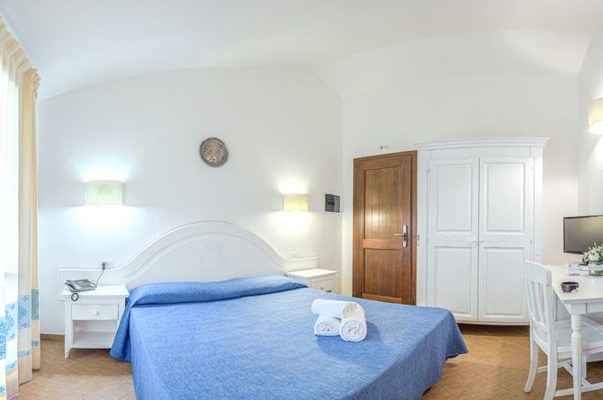 Aménagées dans le style sarde, les chambres doubles Classic (15–18 m2) sont situées en 2e rangée de la plage; elles ont douche, WC, sèche-cheveux, téléphone, TV, coffre-fort payant, minibar, climatisation, terrasse. Les chambres doubles Superior (15 m2), au même aménagement, sont situées près de la piscine. Les chambres doubles Prestige (15–18 m2) sont en 1re rangée de la plage. Les hôtes des chambres doubles Prestige bénéficient en plus d'un espace plage réservé (1 parasol et 2 chaises longues gratuits dans la 2ème rangée de la plage), de peignoirs, de chaussons et d'en-cas au bar de plage (de juin à septembre).