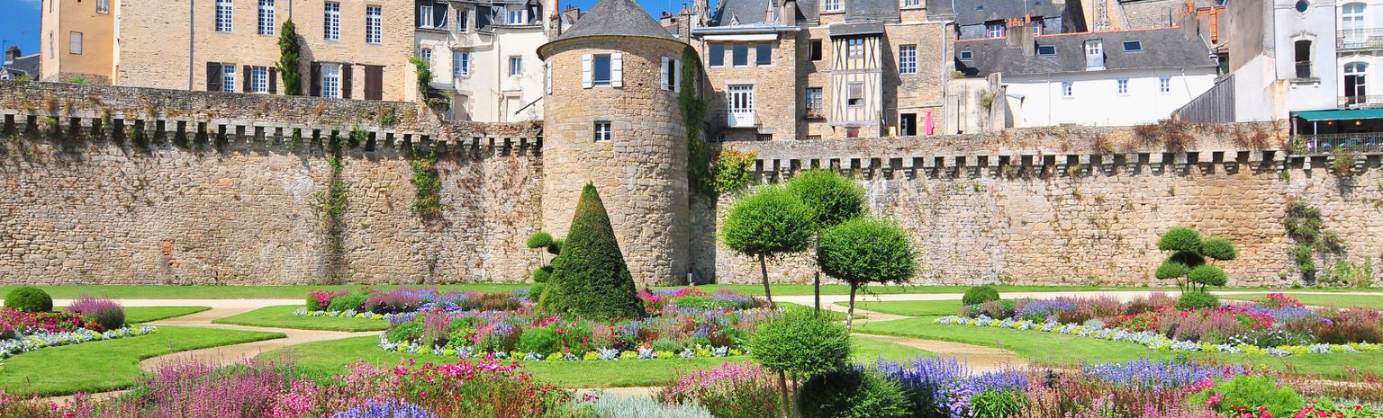 Vannes, capitale du Morbihan, se situe au nord du golfe du Morbihan qui forme une sorte de mer intérieure parsemée de maints îlots et îles. Un chenal de 1 km de large permet de rejoindre l’Atlantique. Vannes dispose d’un aéroport régional et d’une liaison par ferry pour l’île d’Arz. La plus grande école de voile de France y a également son siège. Un long canal mène les nombreux bateaux de la mer au port de plaisance de Vannes, devant la place Gambetta. La promenade maritime invite à la flânerie avec ses commerces qui la bordent, boutiques, bars et restaurants. Une balade dans le centre de Vannes, à pied ou en tram, vous fera découvrir une ville pittoresque avec ses maisons à colombages peintes, ses places et bâtiments historiques. Tout est à voir dans cette ville, surtout les remparts avec le château de l’Hermine et son jardin joliment aménagé et bien entretenu. La halle du marché, le lavoir, l’Hôtel de Ville de style Renaissance italienne et la cathédrale méritent également la visite. Lors de chaudes journées, il est possible de se baigner dans le fleuve Marle bordant la petite plage de Conleau. On peut aussi y louer un kayak ou même faire de la plongée. Des activités nautiques comme stand up paddle, voile, surf, tours en bateau et pêche sont également proposées.